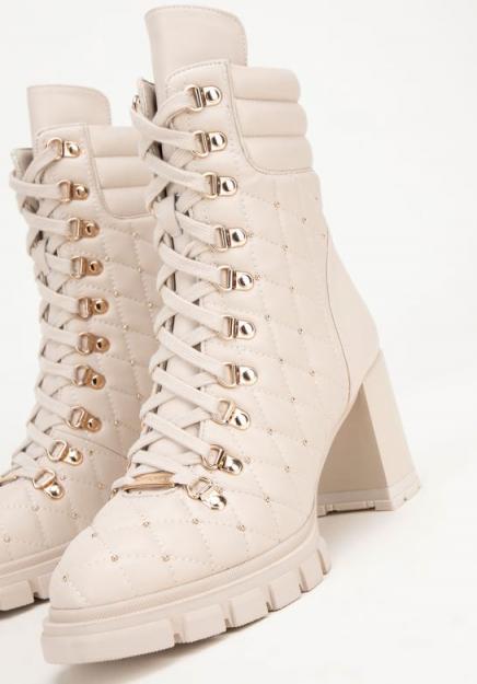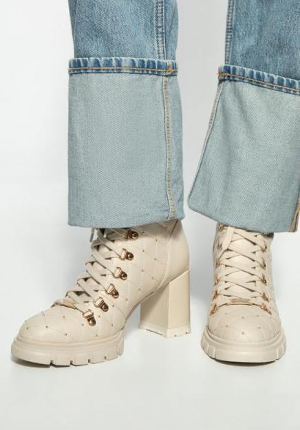Sznurowane botki na słupku Styl i pewność siebie na każdym kroku czekają na Ciebie dzięki naszym eleganckim botkom na słupku. Wykonane z najwyższej jakości skóry naturalnej, te buty stanowią doskonały wybór dla nowoczesnej kobiety, która pragnie połączyć elegancję z komfortem. Dzięki sznurowaniu idealnie dopasowują się do stopy, oferując nie tylko dodatkowe wsparcie, ale także stabilność podczas każdego kroku. Dla kogo To idealne obuwie dla kobiet, które chcą wyróżnić się z tłumu, ale jednocześnie cenią sobie wygodę na co dzień. Niezależnie od tego, czy preferujesz miejski styl, czy eleganckie zestawy do pracy, te botki będą doskonałym uzupełnieniem Twojej garderoby. Nasza rada: W połączeniu z ulubioną sukienką stworzą odważny i kobiecy look, idealny na wieczorne wyjścia. Zestawione z dopasowanymi jeansami i klasyczną koszulą nadadzą Twojej stylizacji nieco pazura, sprawiając, że każda chwila stanie się wyjątkowa. Kluczowe cechy: Materiał: Buty zostały wykonane z wysokiej jakości skóry naturalnej, która łączy trwałość z elegancją. Skóra jest miękka, ale jednocześnie odporna na uszkodzenia, co zapewnia długotrwałe użytkowanie. Design: Nowoczesny i elegancki design z pikowaną wstawką, która nadaje butom unikalny charakter. Dodatkowo dekoracyjne błyszczące jety przy pikowaniu subtelnie podkreślają ich luksusowy wygląd. Detale: Nosek w kształcie migdała optycznie wydłuża nogi i dodaje subtelnego, klasycznego akcentu. Zapięcie: Sznurowane botki doskonale dopasowują się do stopy, oferując dodatkowe wsparcie i stabilność podczas chodzenia. Obcas: Wysoki słupek zapewnia wygodę i komfort, nawet przy długotrwałym noszeniu. Funkcjonalność: Podeszwa typu track gwarantuje doskonałą przyczepność i wygodę, umożliwiając pewne poruszanie się na różnych nawierzchniach. Wybierz te skórzane botki i przekonaj się, jak wiele mogą zmienić w Twojej garderobie. Zrób krok ku nowoczesnemu stylowi i poczuj się wyjątkowo każdego dnia! skóra naturalna materiał syntetyczny materiał syntetyczny