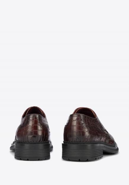 Męskie buty skórzane. Te oryginalne męskie buty to wyjątkowy dodatek dla nowoczesnego mężczyzny. Wykonane zostały z wysokiej jakości skóry naturalnej o fakturze croco, dzięki czemu przyciągają wzrok i urozmaicają każdą stylizację. Zdobienia na nosku i bokach stylowo dopełniają całość. Mają grubą podeszwę, która doda kilku centymetrów wzrostu, a wyraźne żłobienie zapewni stabilność przy różnej pogodzie. Ten model dopełni codzienny strój z dżinsami i koszulą, a stylizacja z chinosami i marynarką nabierze dzięki niemu nowego charakteru. Męskie półbuty ze skóry croco to świetny wybór dla mężczyzn lubiących wyróżniać się z tłumu.Nasza rada: jeśli lubisz oryginalne dodatki, ten model jest dla Ciebie. 100% skóra naturalna; podeszwa z elastycznego tworzywa sztucznego; skórzana wkładka; wyściółka ze skóry i z tkaniny; nosek migdał; sznurowane; ozdobne dziurkowanie. skóra naturalna skóra naturalna / material włókienniczy materiał syntetyczny