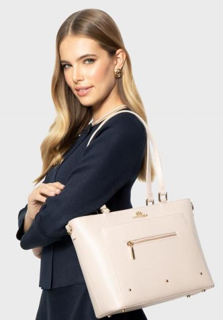 Damska shopperka ze skóry z kieszonkami kremowo – złota…