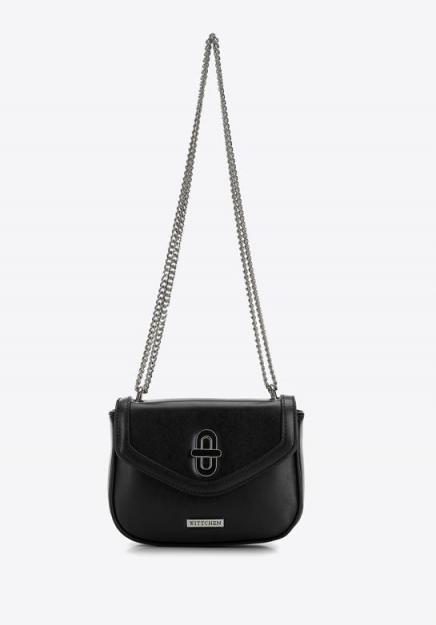 WITTCHEN Torebki crossbody | KOBIETA Damska listonoszka z obszytą klapą na łańcuszku mała czarno-srebrna czarno-srebrny