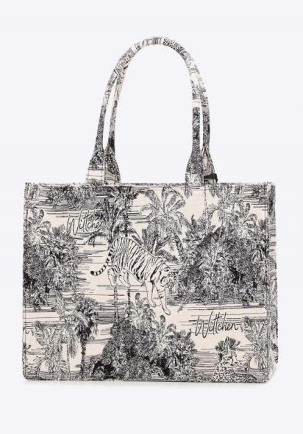 Shopperka z żakardu – styl i funkcjonalność na co dzień Ta elegancka damska torebka z żakardu to idealny wybór dla kobiet ceniących modny design i praktyczność. Wzorzysty materiał i subtelne detale, takie jak odczepiany chwost i logo producenta, dodają torebce wyjątkowego charakteru. Jasna podszewka z haftowanym logo WITTCHEN to gwarancja jakości i stylu. Ten model shopperki to idealne rozwiązanie na codzienne potrzeby zarówno w pracy, jak i podczas spotkań biznesowych, ponieważ pomieści format A4 i wszystkie niezbędne rzeczy. Zapewnia nie tylko stylowy wygląd, ale także doskonałą funkcjonalność, spełniając wymagania każdego profesjonalisty. Dla kogo Dla aktywnych kobiet, które potrzebują pojemnej torebki na każdy dzień – do pracy, na zakupy czy weekendowy wyjazd. Nasza rada: Świetnie komponuje się zarówno z codziennymi stylizacjami ze sneakersami, jak i elegancką, gładką sukienką. Kluczowe cechy: Materiał: Wykonana z bawełny i poliestru z eleganckimi wstawkami z ekoskóry, ta torebka łączy wytrzymałość z wyjątkowym stylem. Elementy z ekoskóry dodają jej elegancji i podkreślają solidne wykonanie. Pojemność: Pomieści format A4. Wnętrze: Trzy kieszenie, w tym jedna zapinana na suwak, umożliwiają organizację rzeczy. Podszewka: Jasna, haftowana w logo WITTCHEN dodaje torebce prestiżu i elegancji. Zapięcie na suwak: Gwarantuje bezpieczeństwo przechowywanych w torebce przedmiotów. Skład: 70% bawełna, 30% poliester; podszewka: 100% bawełna. Wygodne i funkcjonalne rozwiązania: Usztywniane dno zapewnia stabilność torebki, nawet gdy jest w pełni załadowana. Dwie wygodne rączki umożliwiają komfortowe noszenie torebki na ramieniu lub w dłoni. Detale: Odczepiany chwost, który można odpiąć i nadać torebce inny charakter. Dodaj elegancji i funkcjonalności swojej codzienności z tą stylową shopperką!