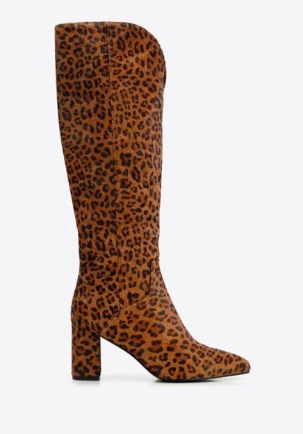 WITTCHEN Kozaki | KOBIETA Damskie kozaki ze skóry z włosiem w zwierzęcy wzór ciemny brąz-jasny brąz